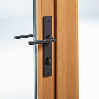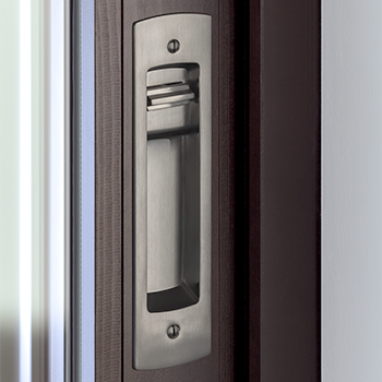 Las manijas al ras están empotradas para permitir que los paneles se apilen, y los huecos profundos permiten una apertura y cierre más fáciles. Además, la tecnología SmartKey Security ™ Re-Key le permite combinar cerraduras de llave con sus otras puertas Pella.