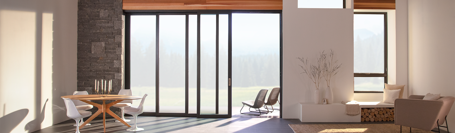 Elija entre tres tipos de alféizar diseñados para abrir y cerrar sin problemas. Con hasta 10 paneles de vidrio, puede crear aberturas expansivas de hasta 59 pies. Los paneles pueden deslizarse hacia un lado o abrirse en el medio, y pueden ocultarse fuera de la vista o apilarse uno contra el otro.
